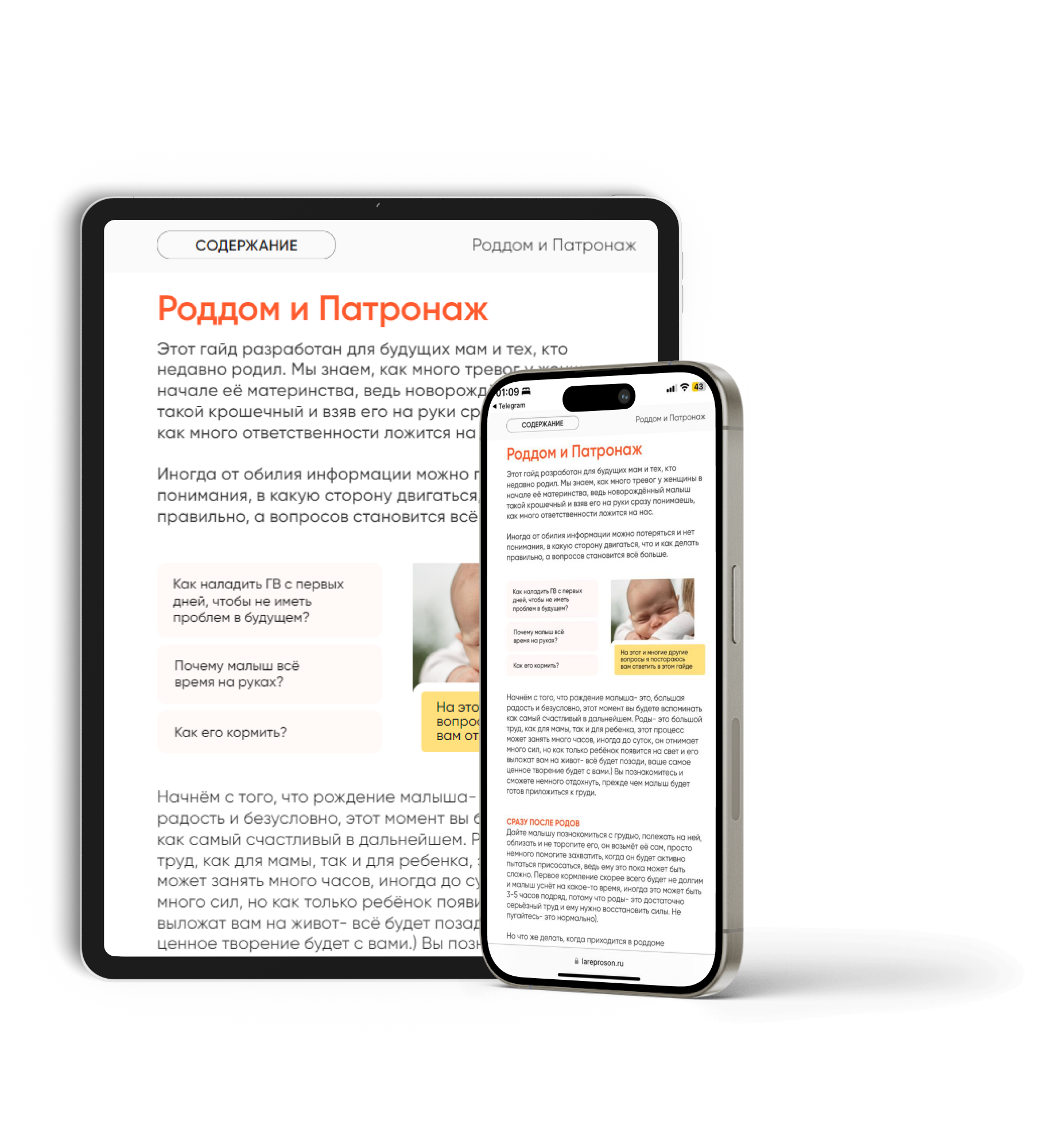 В нем мы рассмотрели все самые важные моменты, которые нужно знать мамам, чтобы не иметь трудностей ГВ с роддома. Чем может удивить патронаж и какие советы могут быть «вредны». А также много практических рекомендаций про кормление, уход и сон новорождённых, чтобы ваше материнство приносило радость, а не тревогу.