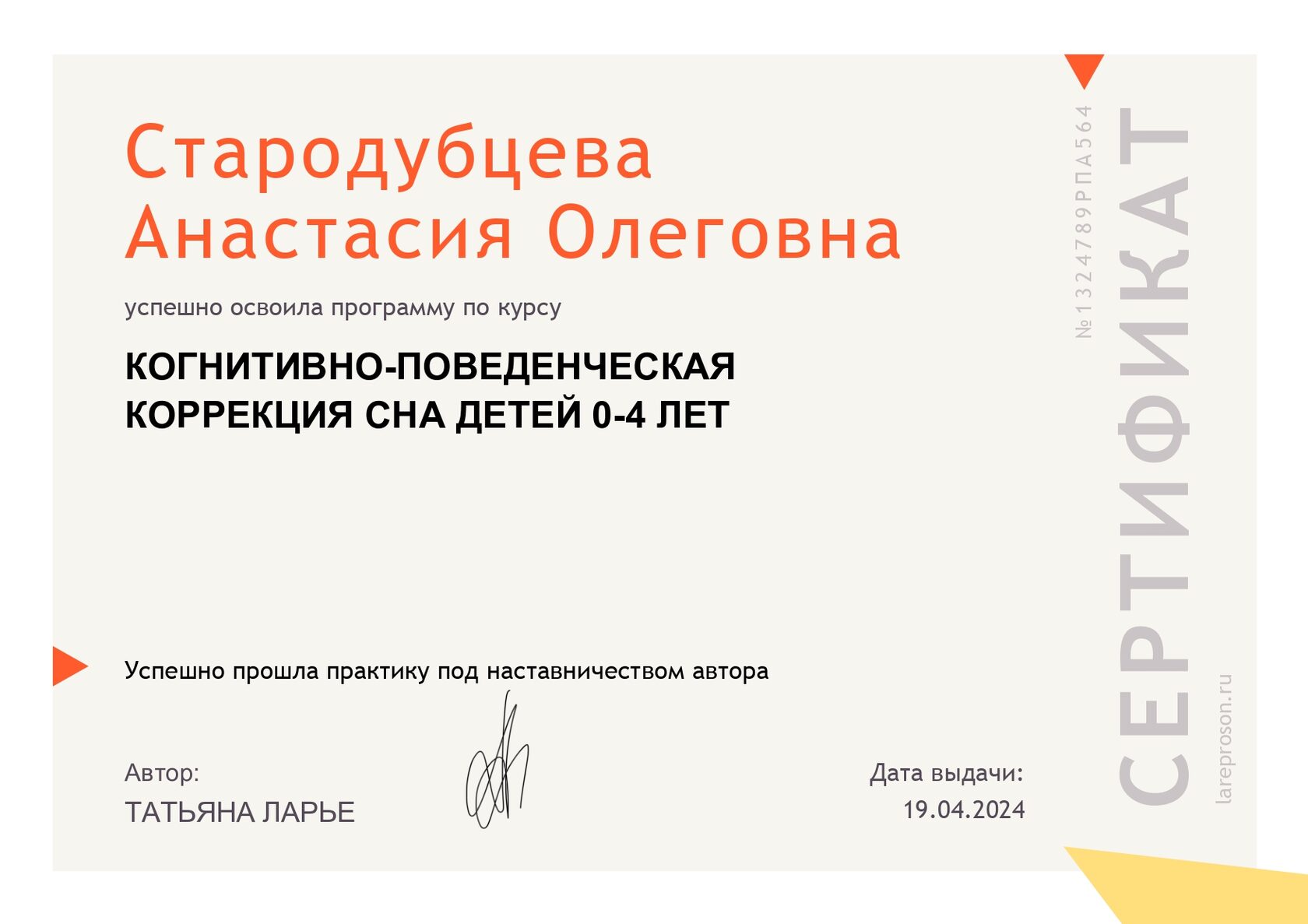 Детский консультант по сну. Стаж работы со сном: с 2023 года.