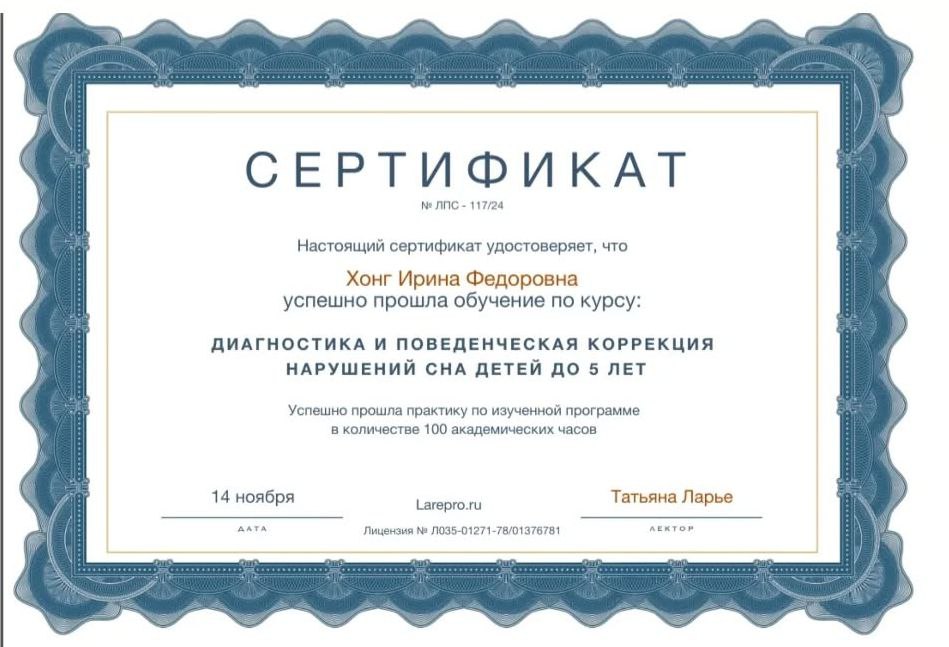 Детский консультант по сну. Стаж работы со сном: с 2022 года