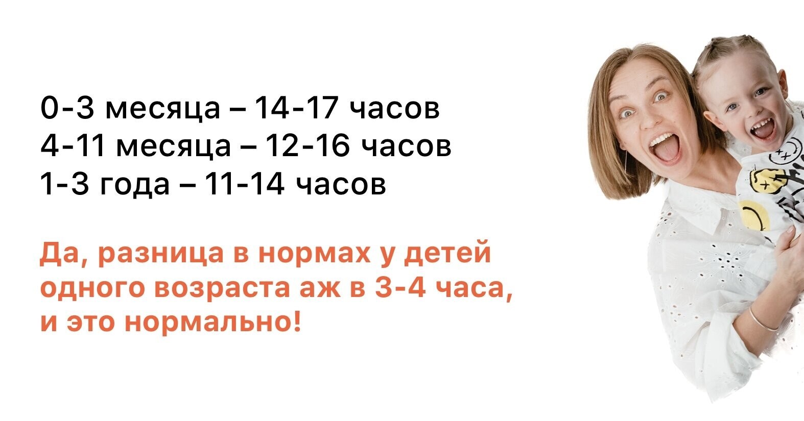 Дети, как и взрослые, бывают малоспящие, среднеспящие и многоспящие. У каждого человека своя норма сна, которая ему подходит и обеспечивает качественный сон. Эта норма зависит от индивидуальных факторов, поэтому у каждого она СВОЯ!